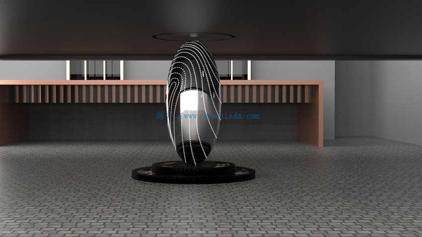 雕塑表面采用鏡面拋光工藝,紋路亞光處理,點狀透光孔沿著指紋的形狀分布,起到裝飾性效果,讓這個雕塑的質感形成對比從而產生強烈的視覺效果。